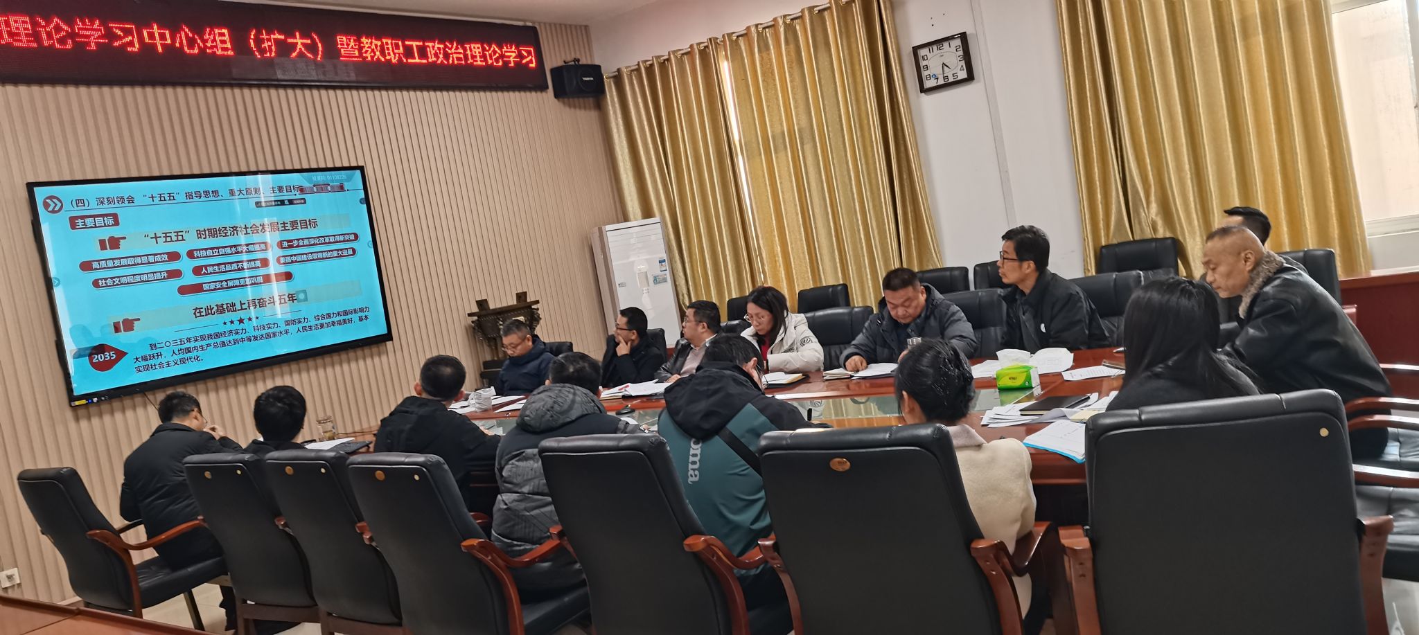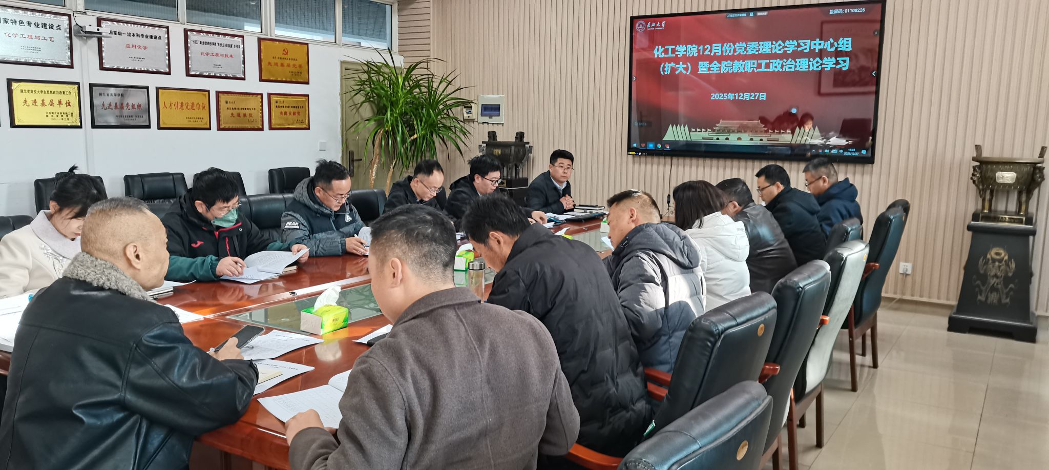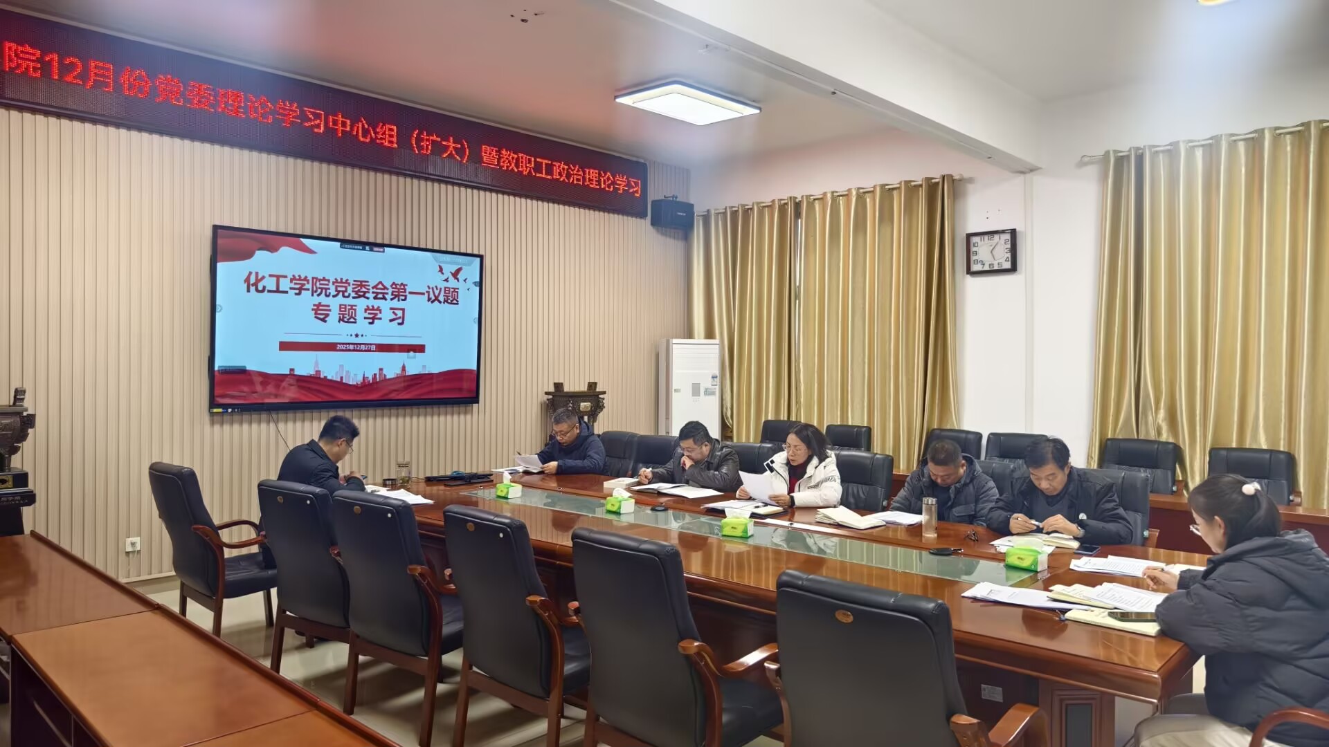 在14教西303会议室召开12月党委理论学习中心组扩大学习暨全院政治理论学习会议。会议采用线上线下相结合的方式进行,学院领导班子成员、各党支部书记、系主任线下参会,全体教职工同步线上参与。