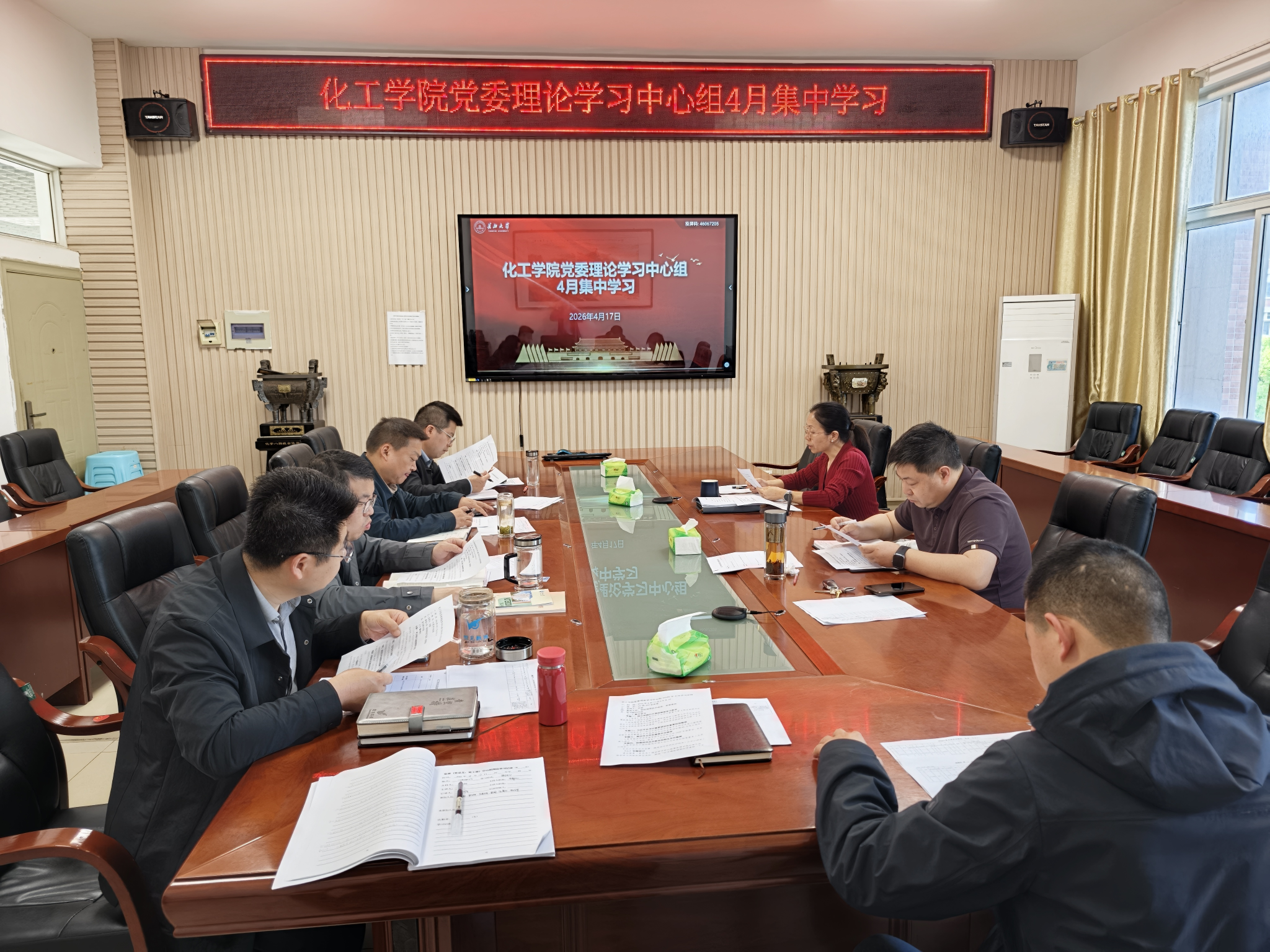 党委理论学习中心组在14教西303会议室举行2026年4月集体学习。会议由学院党委书记王丽主持,中心组全体成员参加。
