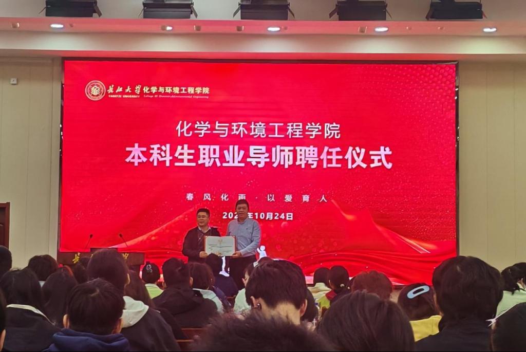 活动伊始,杨会军系统阐述了"化雨"讲坛设立的初衷与职业导师的价值。他指出,学院通过定期邀请学界专家与行业精英开展主题讲座,旨在帮助学生洞悉行业前沿动态与职业发展规律,拓展跨学科知识视野与实践能力,构建专业领域的核心竞争力与职业根基。职业导师走进校园,走进课堂,从多个维度赋能学生职业发展。随后,杨会军代表学院为柯锦康正式颁发本科生职业导师聘书,标志着校企协同育人机制的进一步深化。