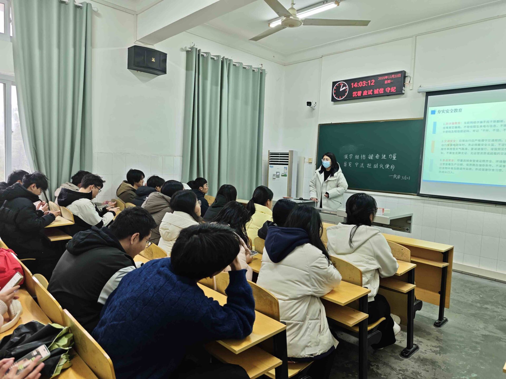 以班级为单位,组织本科生、研究生各班开展系列元旦前后安全教育主题班会。
