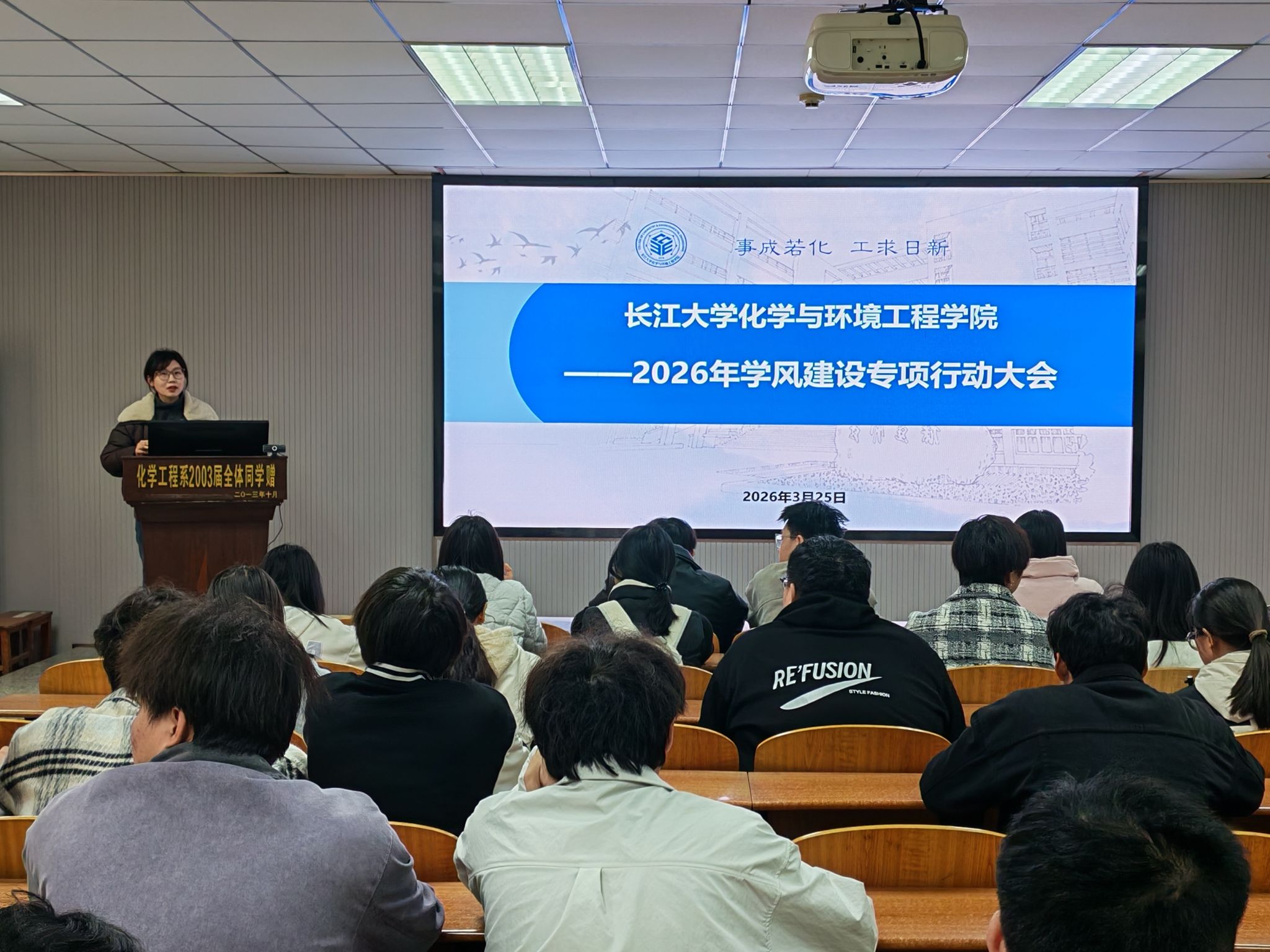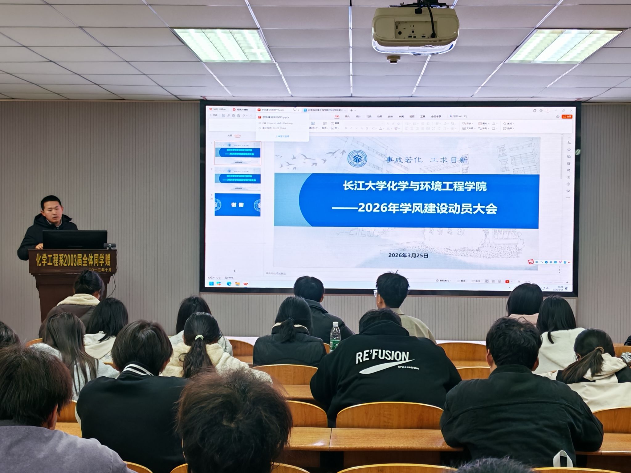 于3月26日12:30,在14教北201召开2026年学风建设专项行动动员大会,学工办主任王陈,辅导员王娜、周学素以及23级、24级学生干部参加会议。